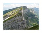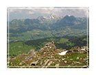 Der Panoramablick ist natürlich fantastisch. Vor uns geht es nun fast senkrecht hinunter zum Walensee, hinter uns haben wir einen tollen Überblick über das Toggenburg und direkten Blickkontakt mit dem Säntis.