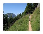 Der Aufstieg bis zur Schwinfärchhütte ist etwas steiler, anschliessend weist der Weg eine angenehme Steigung bis zur Höhe vom Forsthaus auf. Zu unserer linken Seite können wir den Wageten und Brückler bestaunen. Kurz nach Forsthaus wird es dann wieder etwas steiler, aber bis wir dies bemerken sind wir bereits auf dem Hirzli angelangt. Der Ausblick vom Walensee über die Linthebene bis zum Zürichsee ist phantastisch; nichts steht uns im Blickfeld. (Auch der Stau auf der Autobahn tief unter uns ist nicht zu übersehen). Etwas im Dunst ist auch der Greiffensee und der Pfäffikersee auszumachen.