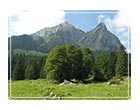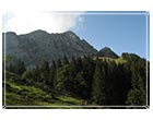 Dies ist eine ganz tolle Tour, die man auch erst am Nachmittag machen kann. Es ist sehr steil, dafür ist man auch schnell am Ziel. Der grosse Ansturm von Berggängern wendet sich immer dem Grossen Mythen zu, so ist es auf dem kleinen Mythen angenehm ruhig. Wir parkieren das Auto auf dem Parkplatz bei der Talstation zur Holzegg. Der breite Weg führt uns anfangs parallel zu Seilbahn bis auf eine Höhe von 1234m, dort verlassen wir den "Touristenstrom" und gelangen nach kurzer Zeit zum Restaurant in Zwüschet Mythen. Von hier aus sind es noch 15 Minuten bis zur Passhöhe (1438m), wo das grosse Kreuz steht.