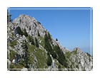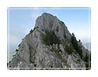 Bis jetzt war es ja easy, nun wird aber aber richtig steil. Der Weg führt zuerst im Wald und anschliessend über die Wiese bis zum Vorgipfel hinauf. Mit dem Vorgipfel (1763m) haben wir auch schon fast die endgültige Höhe erreicht und haben nun stets das Ziel vor Augen. Der Weg führt nun gerade aus, alles dem Grat entlang. Erst die letzten 30 Höhenmeter müssen wir dann etwas klettern und den optimalen Weg suchen.
