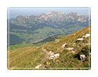 Auf dem Gipfel bietet sich ein toller Rundblick. Steil hinunter zum Walensee, zur rechten den Listchamm und etwas versetzt der Speer, auf der linken Seite die weiteren Churfirsten Frümsel, Brisi, Zuestoll, Schibenstoll, Hinterrugg, Chäserrugg. Natürlich haben wir auch eine perfekte Sicht auf den Säntis und das Toggenburg. Es gäbe noch viele Berge aufzuzählen, aber schauen Sie es sich selber an.