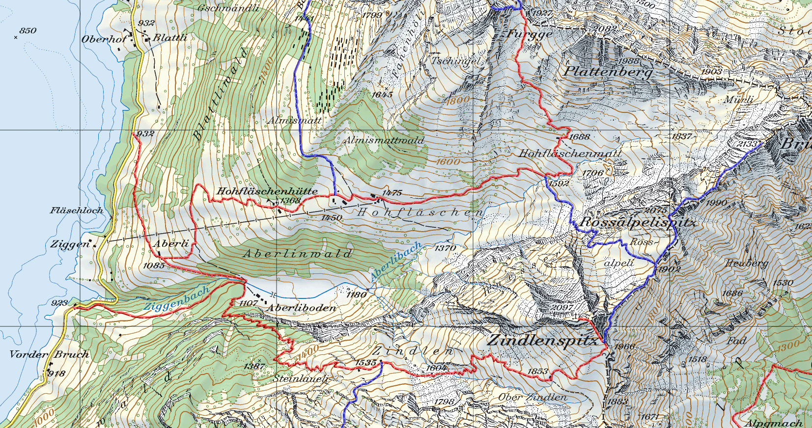 Oberhof - Aberli - Aberliboden - Zindlen - obere Zindlen - Zindlenspitz - Hohfläschen - Aberli - Oberhof |