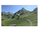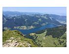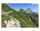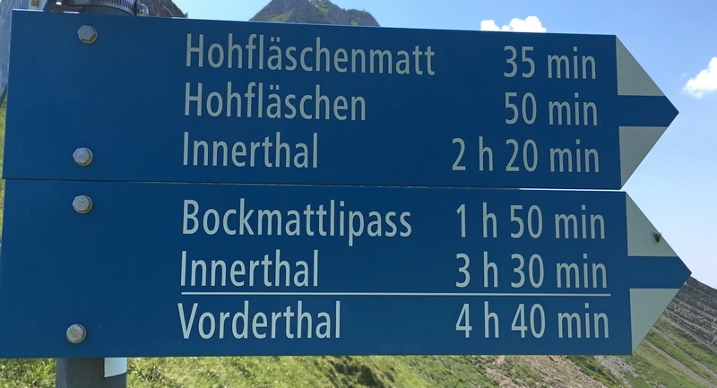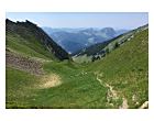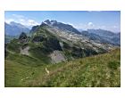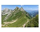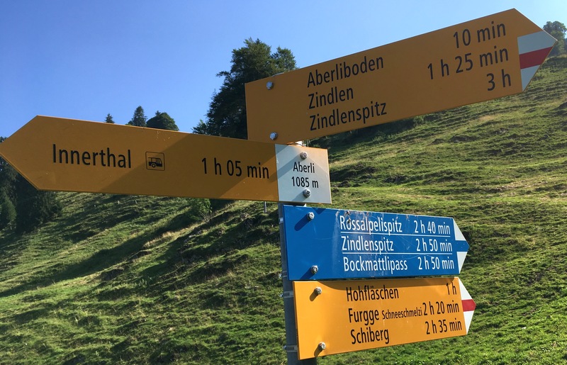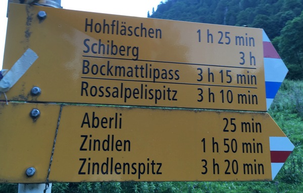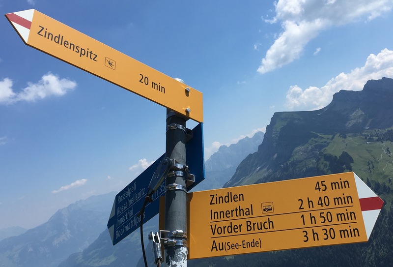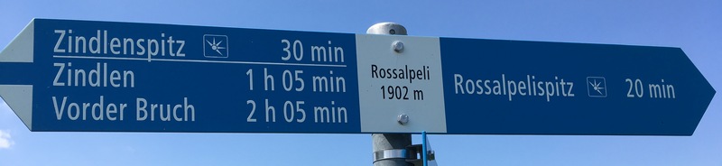 Der Abstieg führt entlang der Krete zwischen Zindlenspitz und Rossalpelispitz. Der Weg ist ziehmlich steil, ist jedoch an der steilsten Stelle (rund 20m) mit einer Kette gesichert. Diejenigen, welche nun bereits genug haben, nehmen zwischen Zindlenspitz und Rossalpelispitz die Abzweigung links und machen sich bereits wieder auf den Rückweg. Wer noch nicht genug hat macht einen Abstecher zum Rossalpelispitz oder sogar bis zum Brünnelistock. (Mir war der Zindlenspitz für heute, ein Tag wo es in Zürich 36 Grad heiss war, genug). Der Abstieg führt via Hohfläschen, Aberli zurück zum Startpunkt.